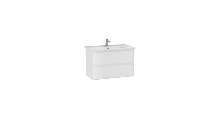 Alinda Waschbeckenunterschrank mit 2 Schubladen Breite: 80 cm Farbe: Hochglanz Weiß