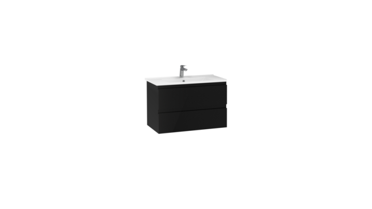 Alinda Waschbeckenunterschrank mit 2 Schubladen Breite: 80 cm Farbe: Hochglanz Schwarz