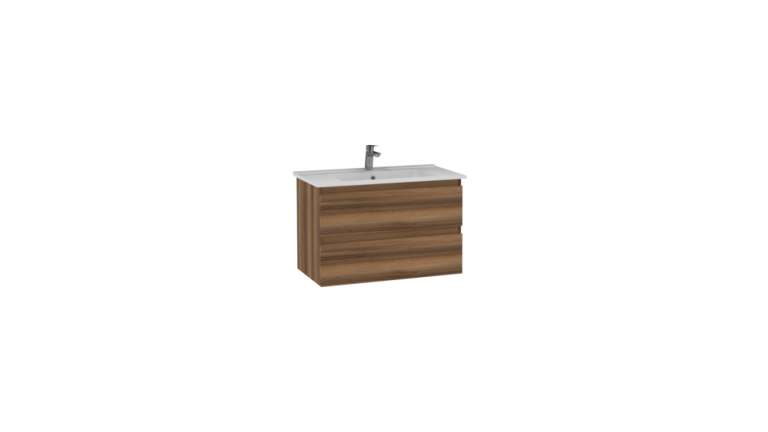 Alinda Waschbeckenunterschrank mit 2 Schubladen Breite: 80 cm Farbe: Nußbaum