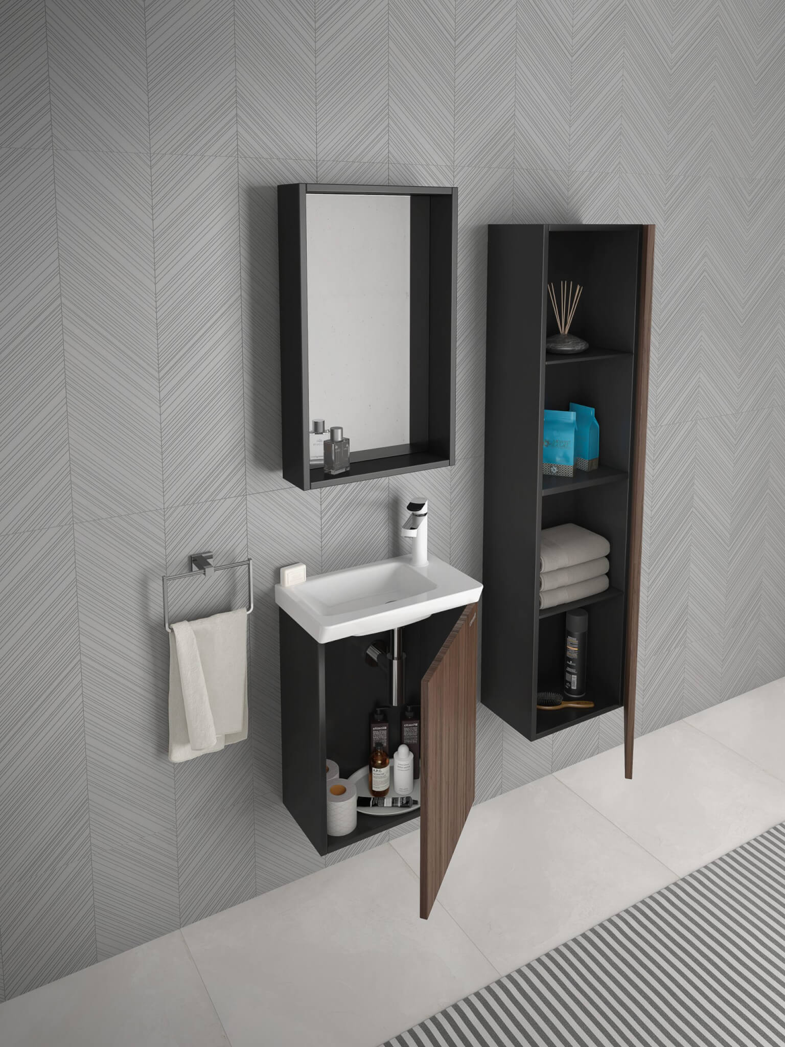 - Farbe: Antrazit/Nußbaum – mit passende Waschbecken MY045